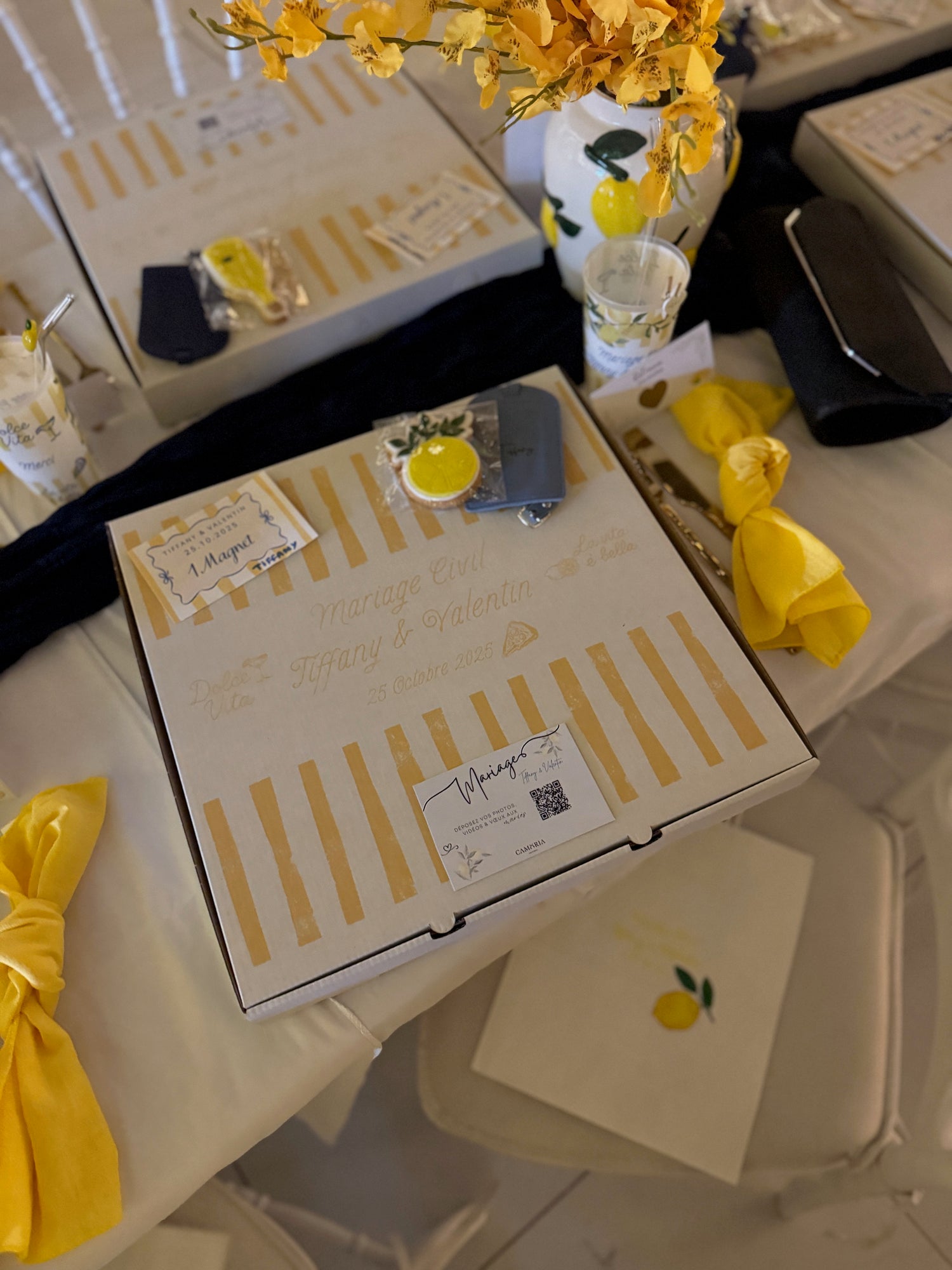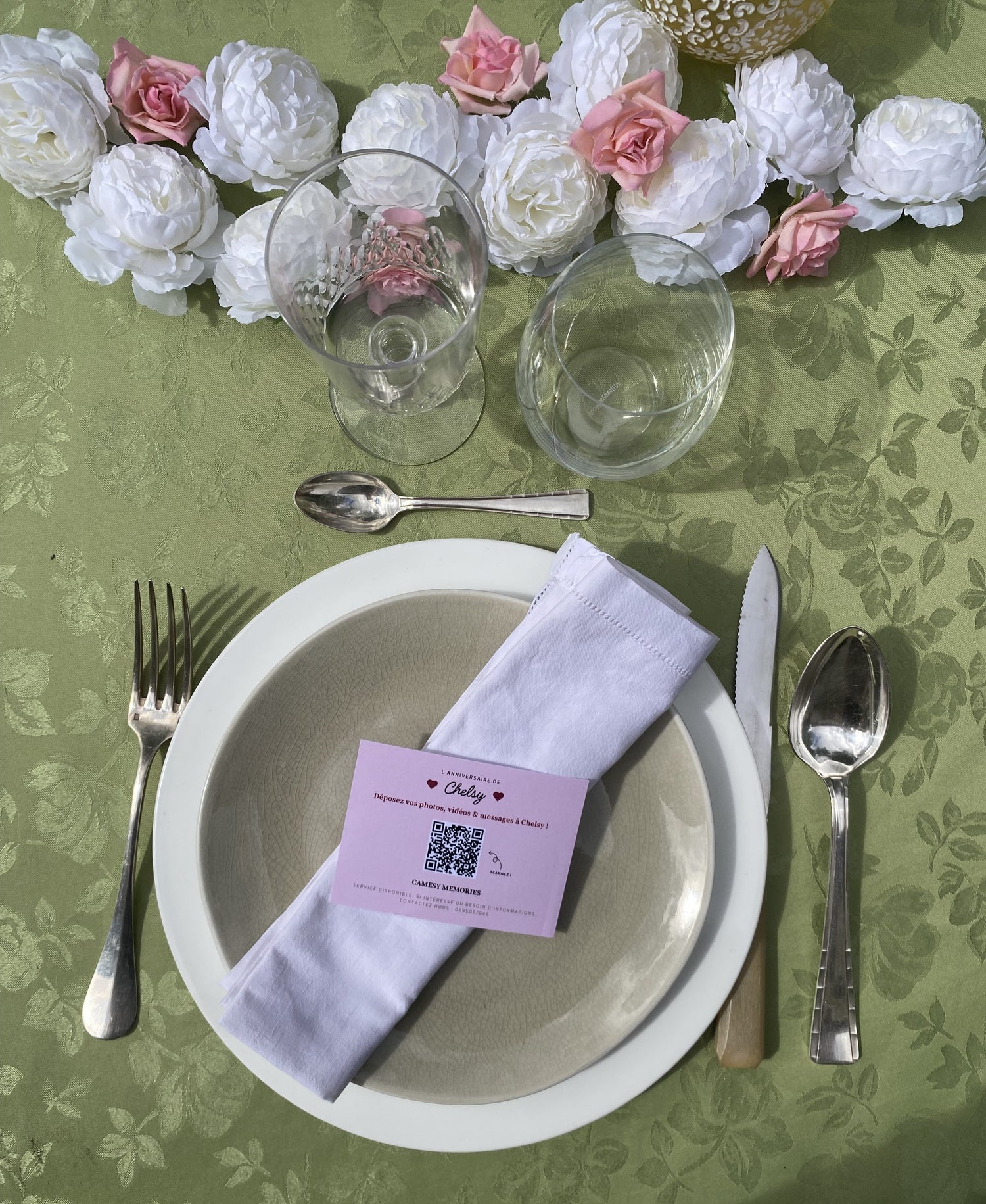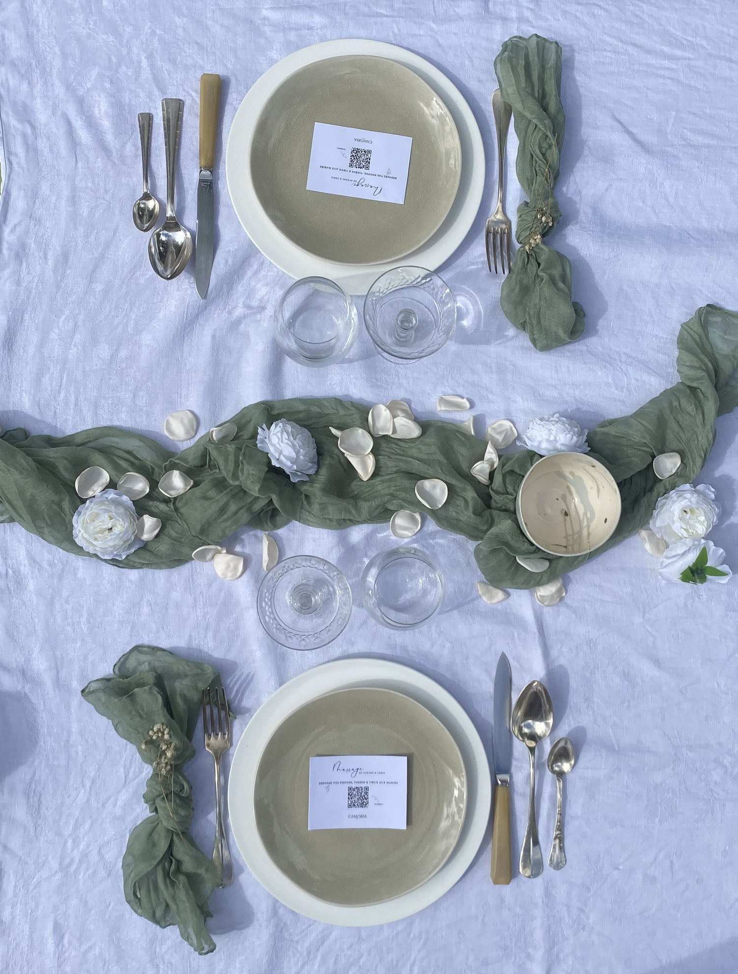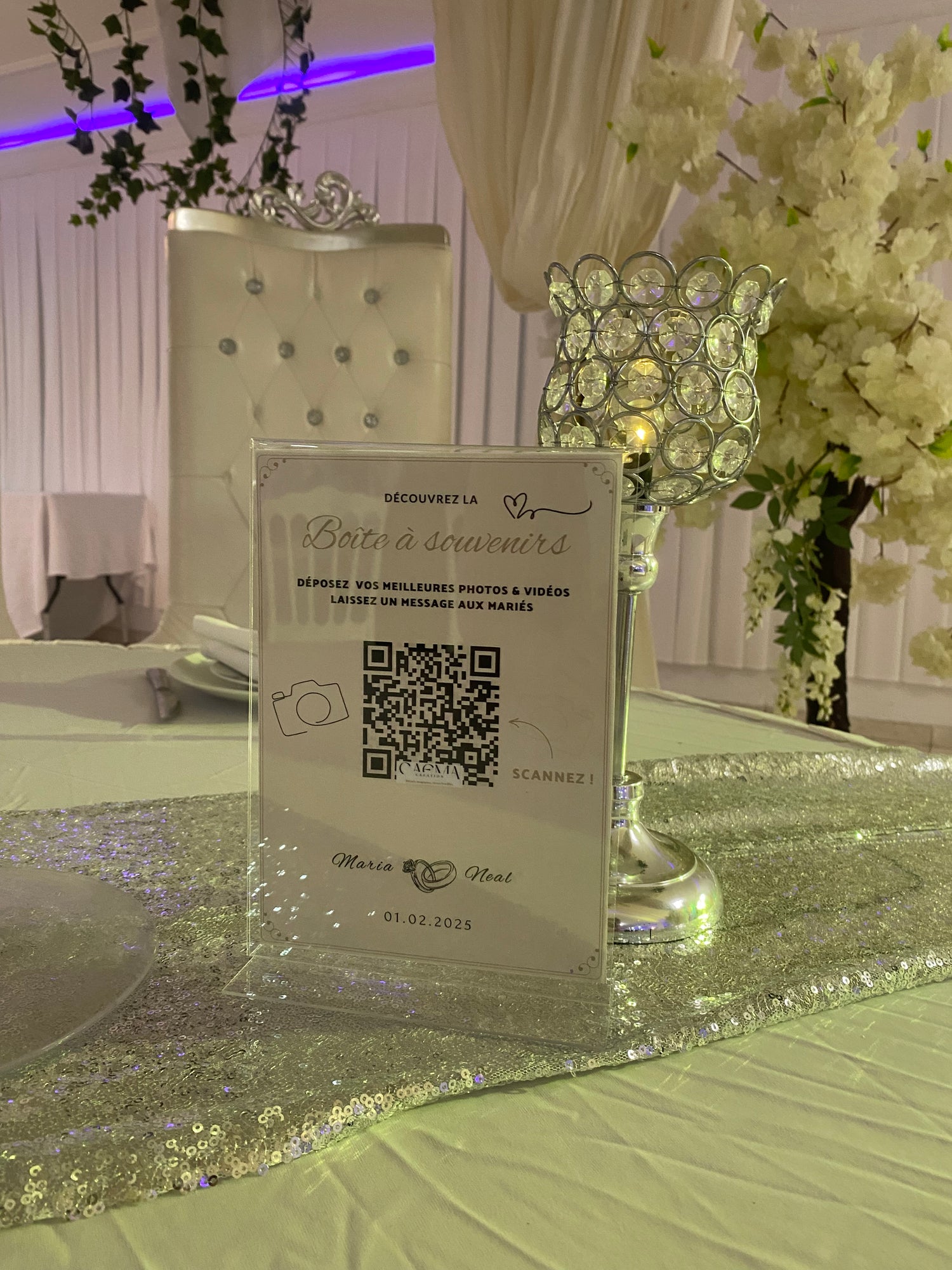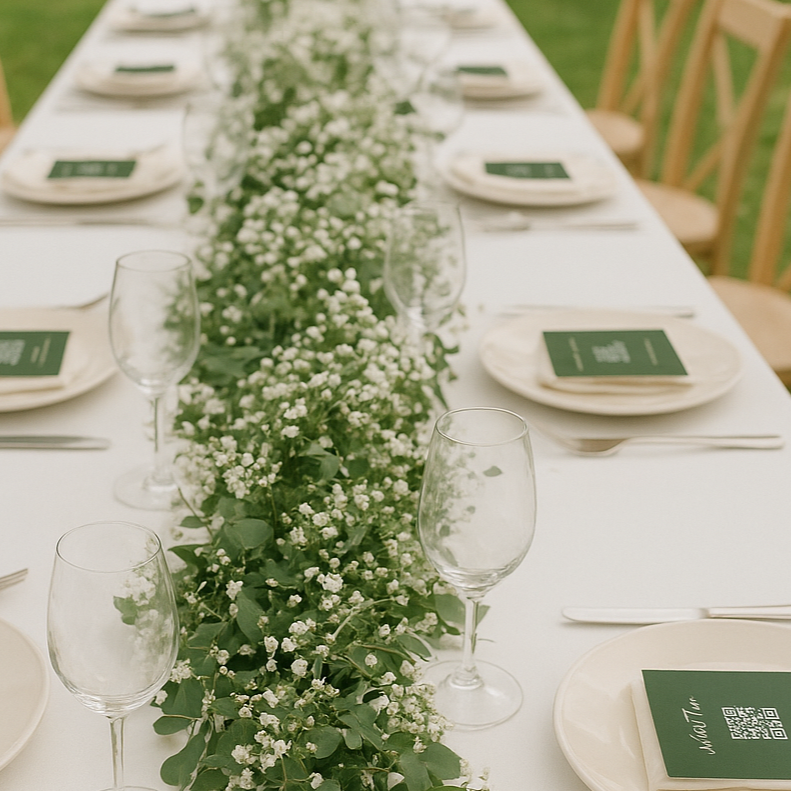 Une fois que vous avez commandé, nous nous occupons d'adapter le visuel de carte que vous avez choisi avec vos informations (type d’événement, prénoms, QR code lié à votre plateforme personnalisée...) et de vous les envoyer par voie postale. Vous n'aurez plus qu'à réceptionner le colis et disposer les cartes dans les assiettes le jour J : tout simplement.